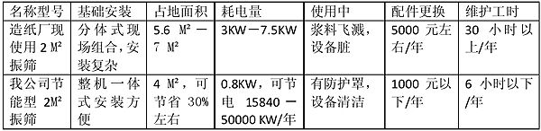 根据上表对比可以看出,从安装使用到节能维护,新型节能振筛均有显著优势。使用新型节能振筛每年所节省的费用不止一台振筛(2M2振筛价格均在2万元以下,不锈钢材质除外)。
